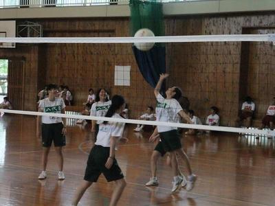 あいにくの雨のため、男女混合でビーチバレーボール大会です