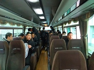 旅行団は予定より10分ほど早く学校を出発しました。