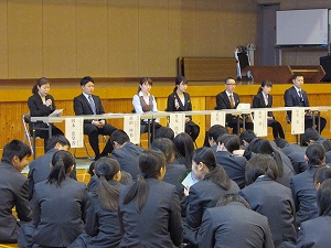 社会人として活躍している卒業生や進学して勉学に励んでいる卒業生の生の声を直接聞くことにより、在校生一人ひとりが、企業や上級学校が求めている人材や「高校生である今、何をしなければならないか。」や「高校生である今しかできないこと」を知る。