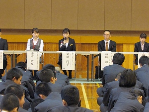 併せて、講話により学んだことを基に自らの進路を真剣に考え、今後の学校生活に生かし、自己実現を目指す契機とする。