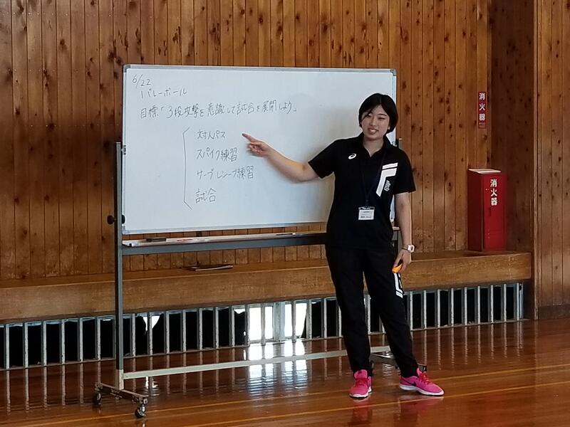 3年生普通科体育コースの体育の授業(バレーボール)で行いました。授業をの目標や学習活動を明示し、生徒が主体的に取り組むことができるように工夫がなされていました。