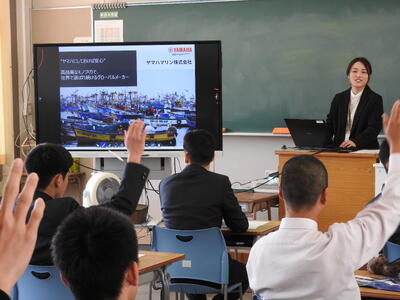 2年生を対象に熊本県商工労働部、産業振興局の企業立地課の方から熊本県庁出前講座として県内企業の紹介をいただきました。生徒たちは熊本県のなかでも県南地域にはどのような企業があるか、今回の講話を通して学習しました。