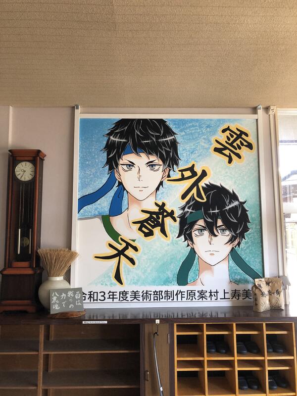 美術部で制作した看板は、体育大会終了後は玄関に飾っていただいています。