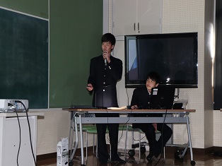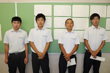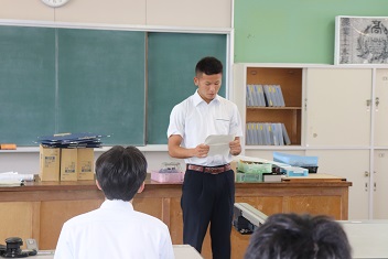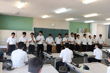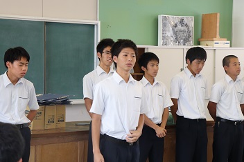 学科を代表して3年西坂太茂君(宇土鶴城中出身)が出場選手に激励の言葉を贈りました。