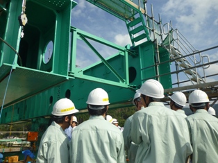 について説明を受け、現場を見学しました。プレストレストコンクリートに乗って、どれだ