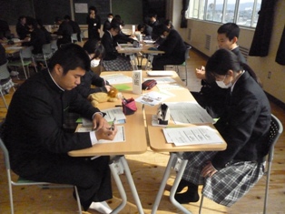 参加した生徒は、一生懸命取り組んでいました。班での活動では、ワークシートの課題を班員全員で考え、全体の前で発表するなどの活動を行いました
