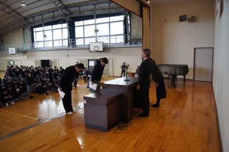 本日は平成28年度の最終日です。生徒諸君は1年間とても頑張ってくれました。また、大きく成長もしていると思います。表彰式ではその頑張りを多くの生徒が表彰されました。来年度のもっともっと成長した姿が楽しみです。