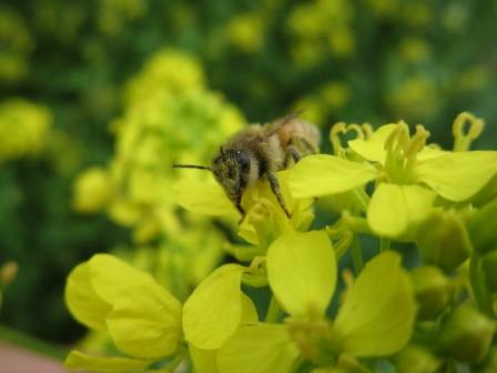 近づいてみると、ミツバチが忙しそうに蜜をとっていました。このミツバチ、農業には