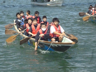 2日目は、野外活動研修として、ペーロン漕艇
