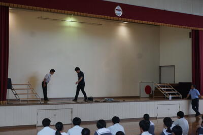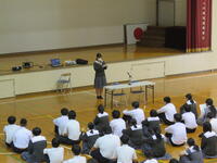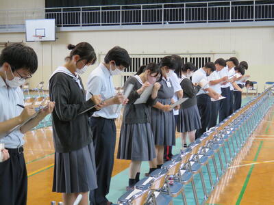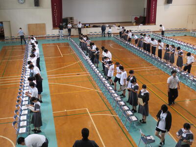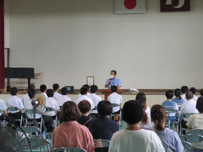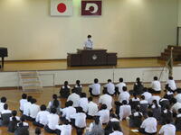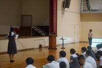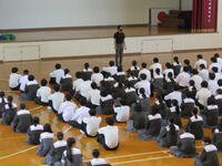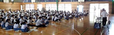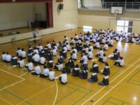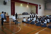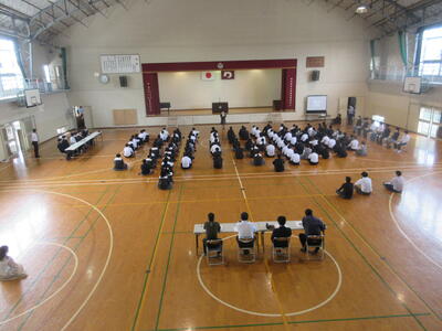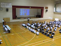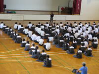 本日、放課後体育館で全校集会が行われました。