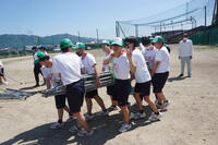 まずは、体育大会で使ったテントやイスの片づけをみんなで協力して行いました。
