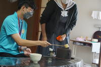 その後、アップルパイの製造とお茶のおもてなし体験のため、2手に分かれて会場に移動しました。