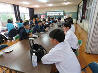 農場見学後、昼食会場で昼食と八農の生徒達との交流会が行われました。