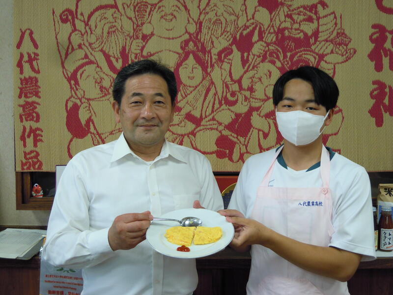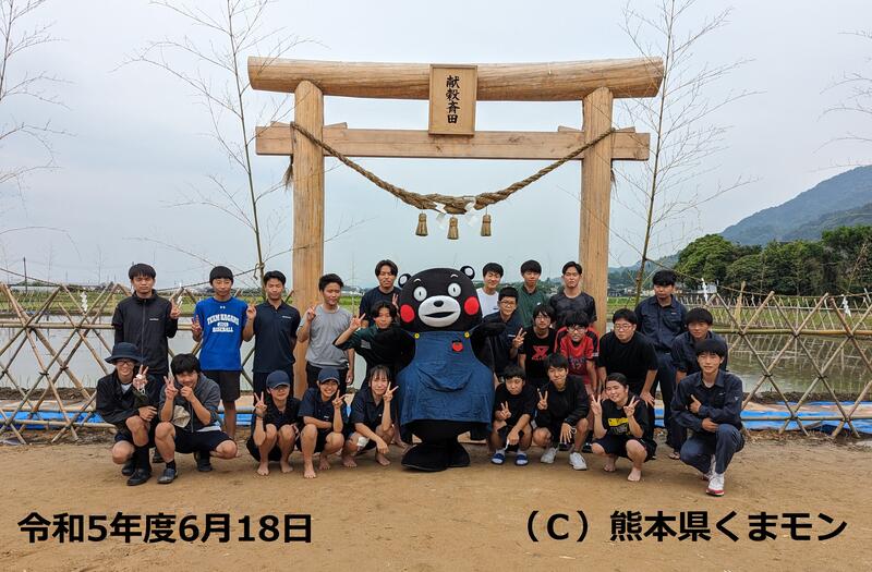 八代農業高校の全員が応援しています。