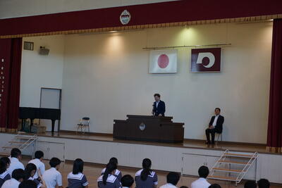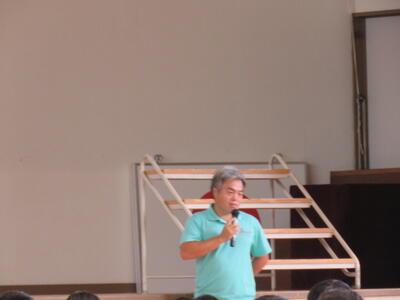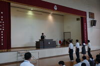 体育館では、学校長より歓迎のあいさつ、台湾の先生よりあいさつを頂きました。