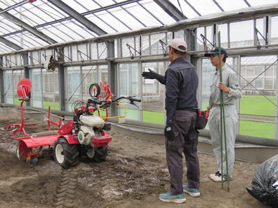 実習生は、花き農家・トマト農家・梨農家・かんきつ農家へ分かれて、