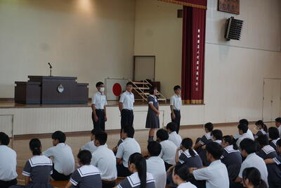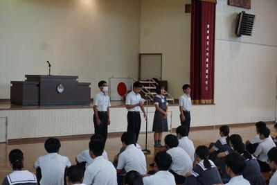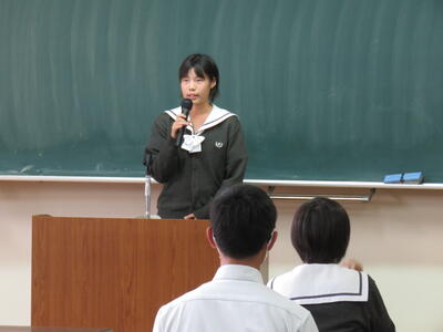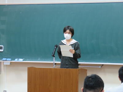 その後、各クラス・各学科などで選ばれた生徒による意見発表が行われました。