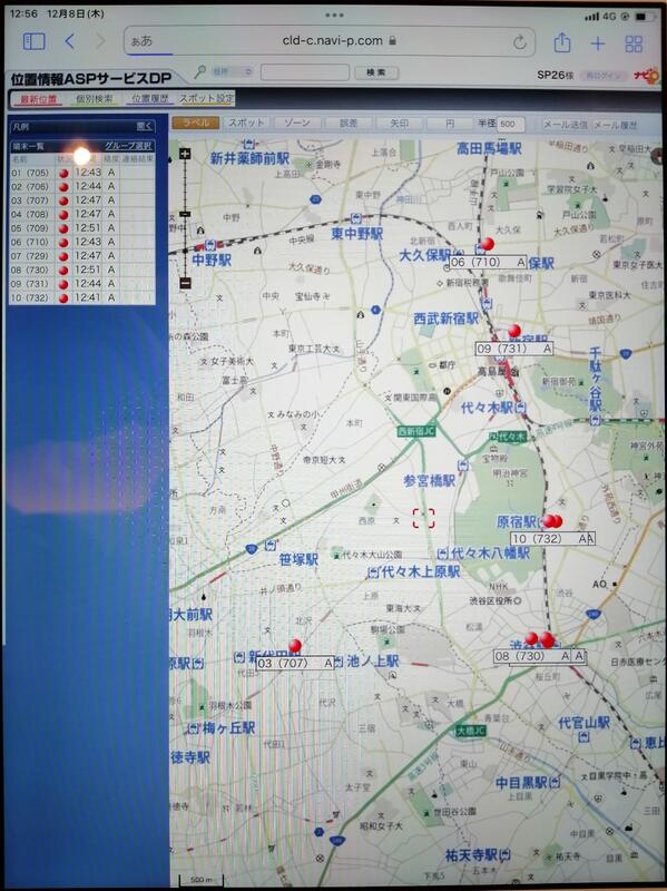 生徒に持たせたGPS付き携帯電話の位置を確認し