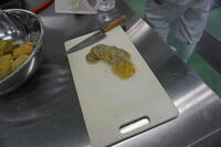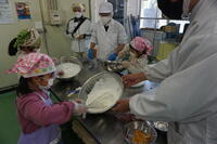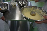 製造工程を先生から教えてもらい、各自メロンパンを製造していきます。