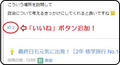 現2年生は来年度に選挙権を得て投票できるようになります。
