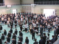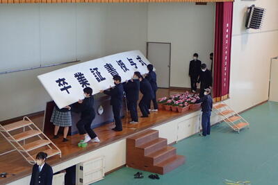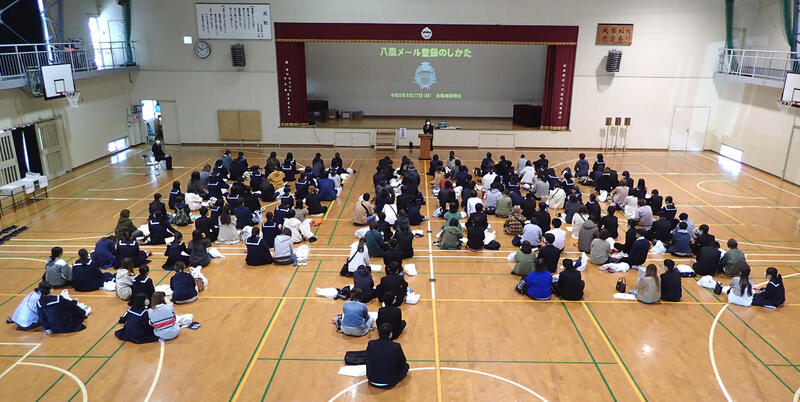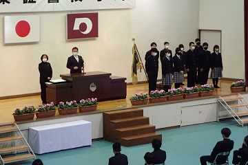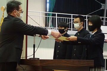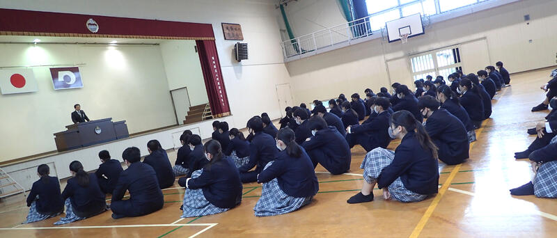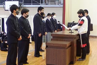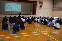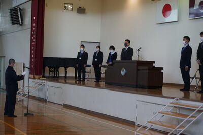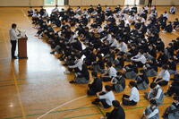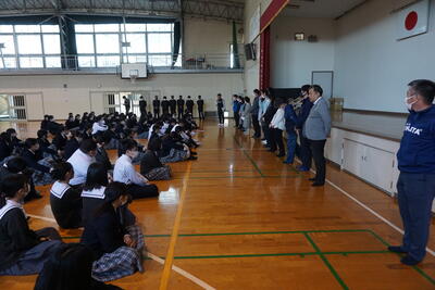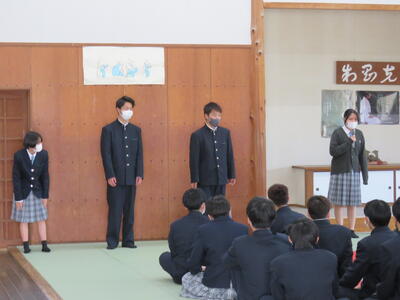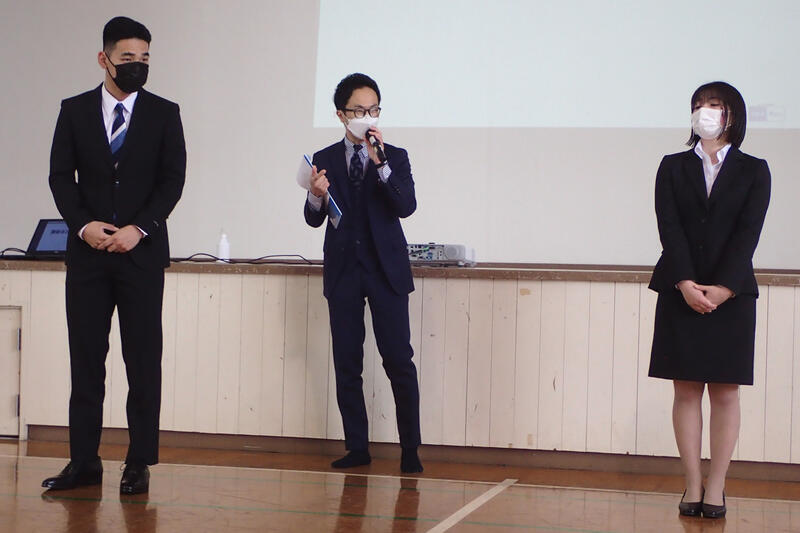 今日の全校集会は全国大会にむけての概要説明や生徒実施委員長などの紹介が行われました