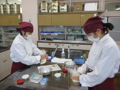 現在、2年食品製造の授業でパンの製造実習を行っています。