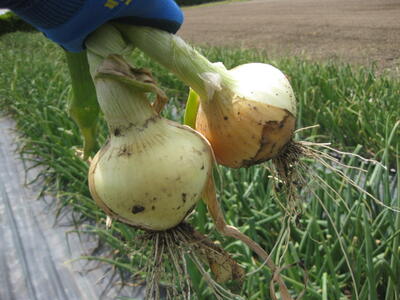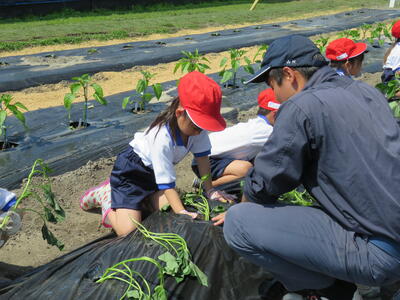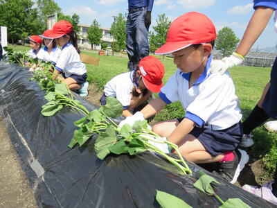 5月1日に本校のふれあい農園で鏡小学校の1年生と本校野菜専攻の3年生と