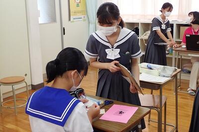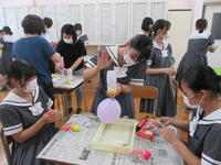6月に子育て支援センターの方に教えていただいたスクイーズを3年生が1年生に教えながら、一緒に楽しく作りました。
