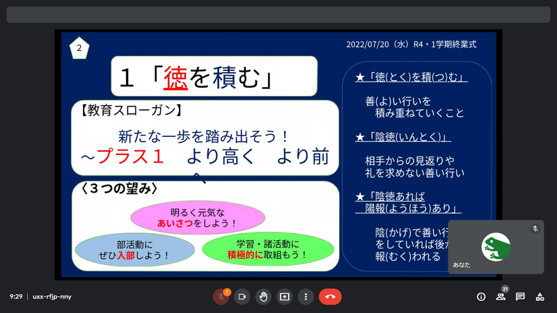 本日はコロナ感染症対策のためリモート終業式を行いました。