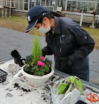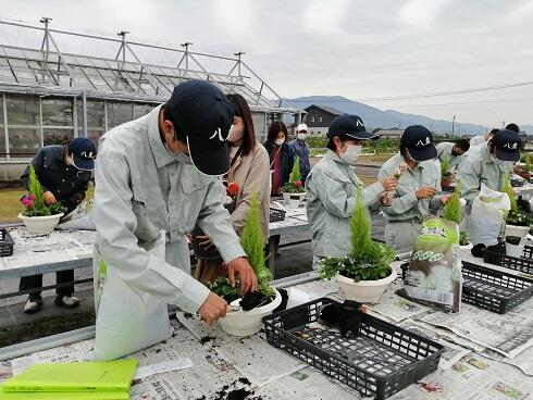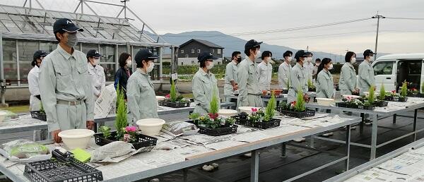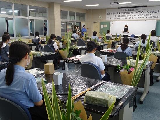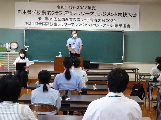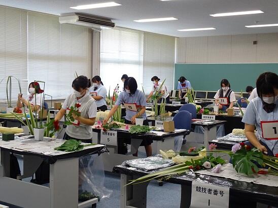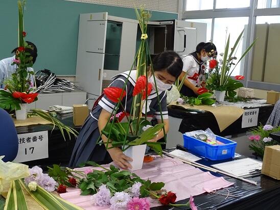 熊本県学校農業クラブ連盟フラワーアレンジメント競技会が7月26日(火)に本校で行われました。用意された花材をそれぞれのテーマとコンセプトに沿って60分で作品を仕上げる競技で、県下の高校生20名程がエントリーし、新型コロナウイルス感染防止ならびに熱中症対策を徹底し実施しました。結果は、本校3年園芸科学科の古里さん(氷川中)が「祈り」というテーマで十字架をイメージした作品を製作し、見事、最優秀賞を受賞しました。また、2年園芸科学科の藤本さん(下益城城南中)も優秀賞を受賞しました。なお、古里さんは10月中旬に青森県で予定されている全国産業教育フェア青森大会2022「第21回全国高校生フラワーアレンジメントコンテスト」へ出場予定です。今後の活躍にも期待!!