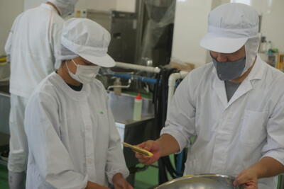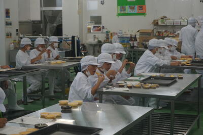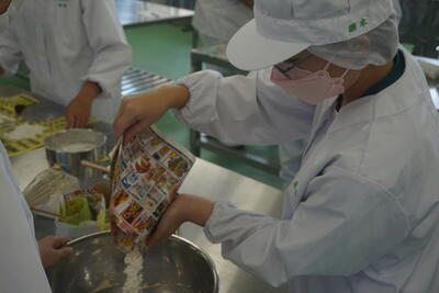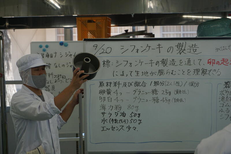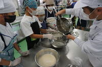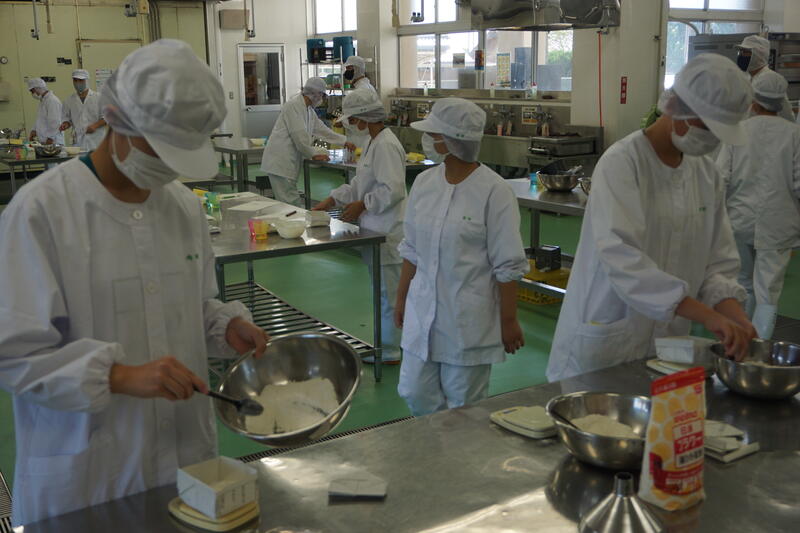 生徒らは、前回の授業で自ら考えたクッキー製造の計画書をもとに、黙々と実習に取り組んでいました。