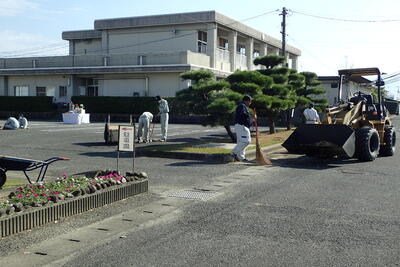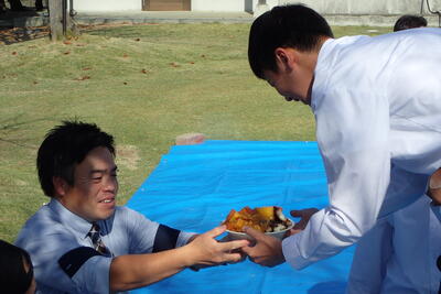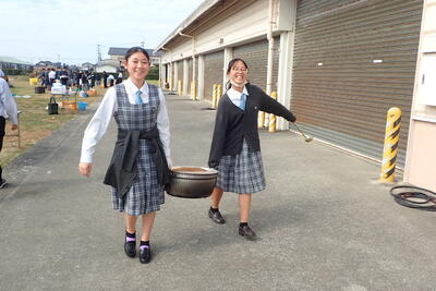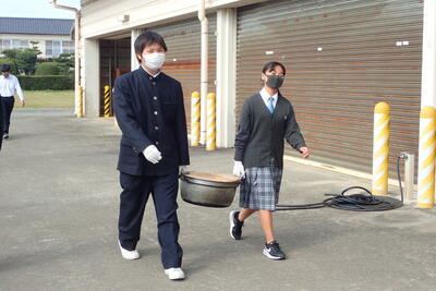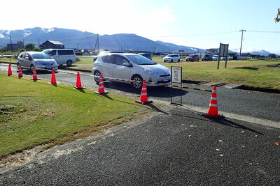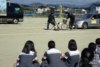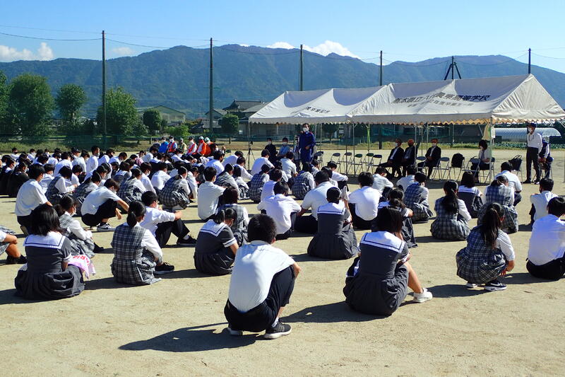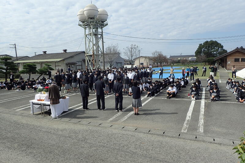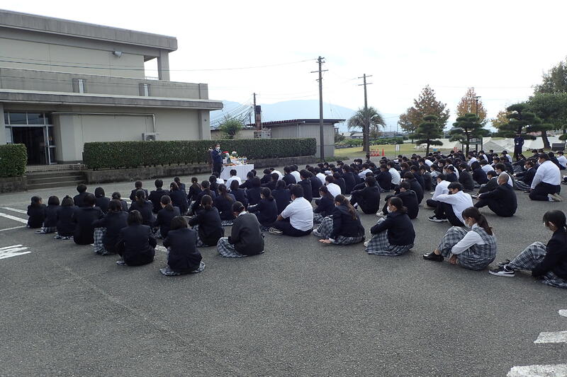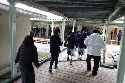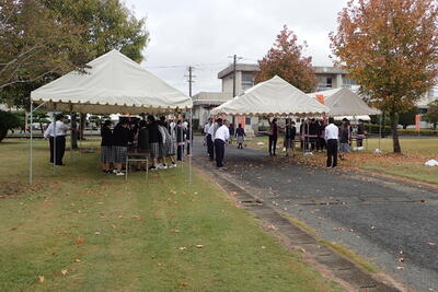 2学年所属の先生方や校長先生が交通誘導や見送りをされました。