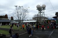 お台場のフジテレビ本社ビルの特徴ある球体展望室を見上げ