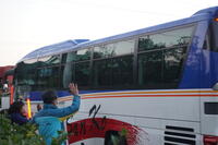 本日、朝7:00頃、2年生の修学旅行団が出発しました。