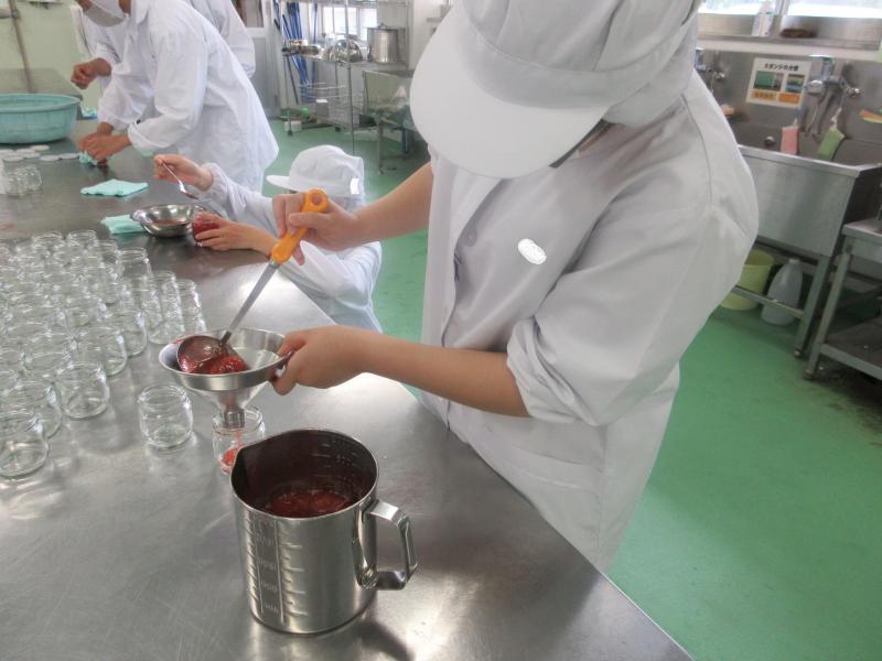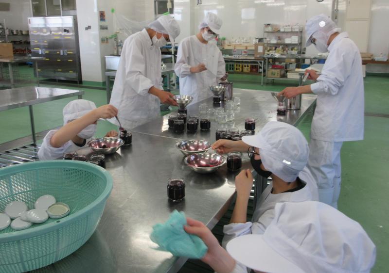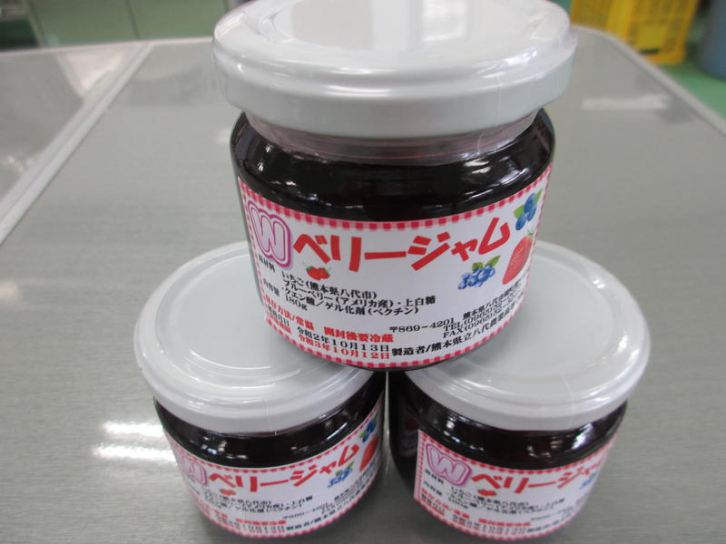 10月13日に3年食品科学科の生徒たちが、八農オリジナルのWベリージャムを製造しました。いちごのストロベリーのベリーとブルーベリーのベリーを組み合わせ、とても相性のいい美味しいジャムが完成しました。
