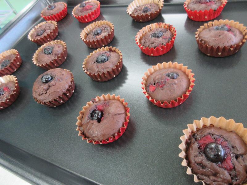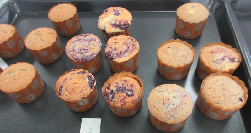 16日に1年食品科学科の1年生が、Wベリージャムをマーフィンに混ぜてWベリーマフィンを製造しました。とても美味しそうにできていました。