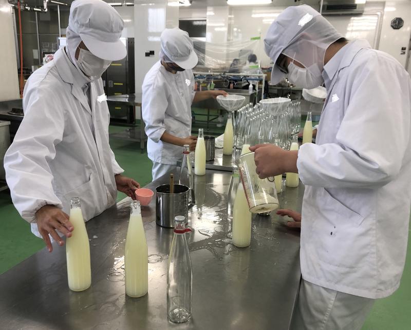 11月2日に2年食品科学科の生徒たちが、文化祭で販売するハチピスを製造しました。はちみつがちょぴり入って初恋の味として夏の飲みものですが、人恋しくなる秋にももってこいの飲みものです。一度飲んでみてはいかがでしょう。300円で販売しています。