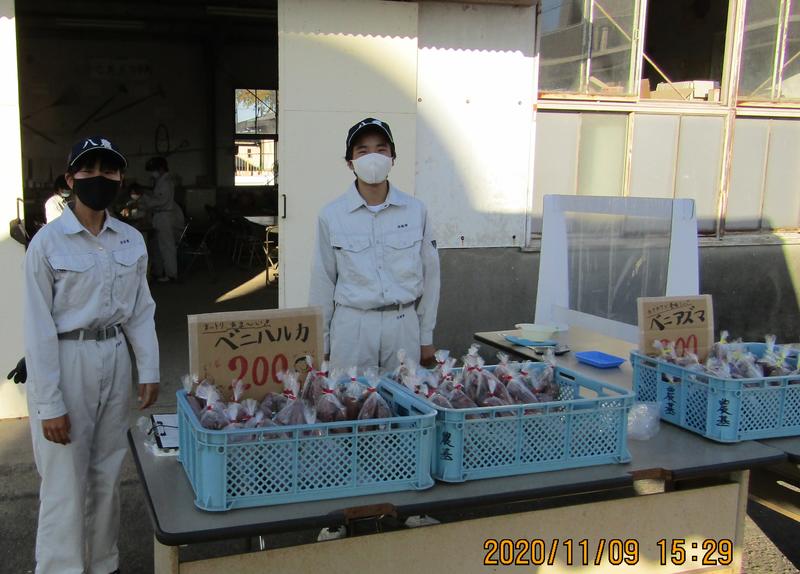 今年度は新型コロナウイルス感染症対策のため、文化祭を中止する学校がある中、八代農業高校は販売期間を9日月曜日から12日木曜日の15時半から16時半の1時間だけの小規模販売会を実施しています。受付で名前・連絡先の記入、手の消毒、マスク、検温をしていただき、明日も同じ時間帯で販売を実施しますのでよろしくお願いします。