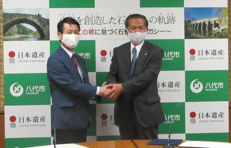 令和2年11月19日16時30分から『八代農業塾』の発足・運営にあたり、八代市長との連携協力に関する包括協定書の調印式が八代市の鏡支所で行なわれました。
