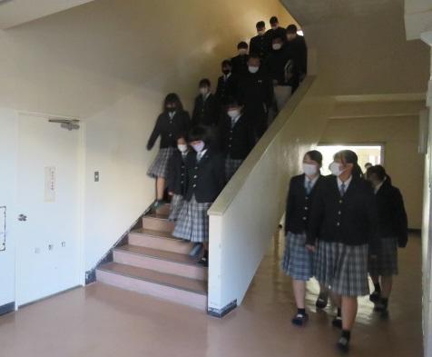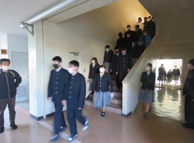 12月1日6限目14時35分に大規模地震震度7が発生し、2次災害として津波警報が発令されたものと想定し実施されました。