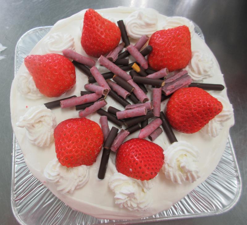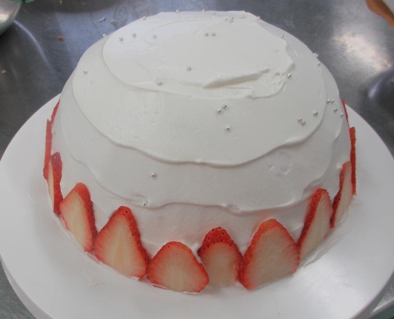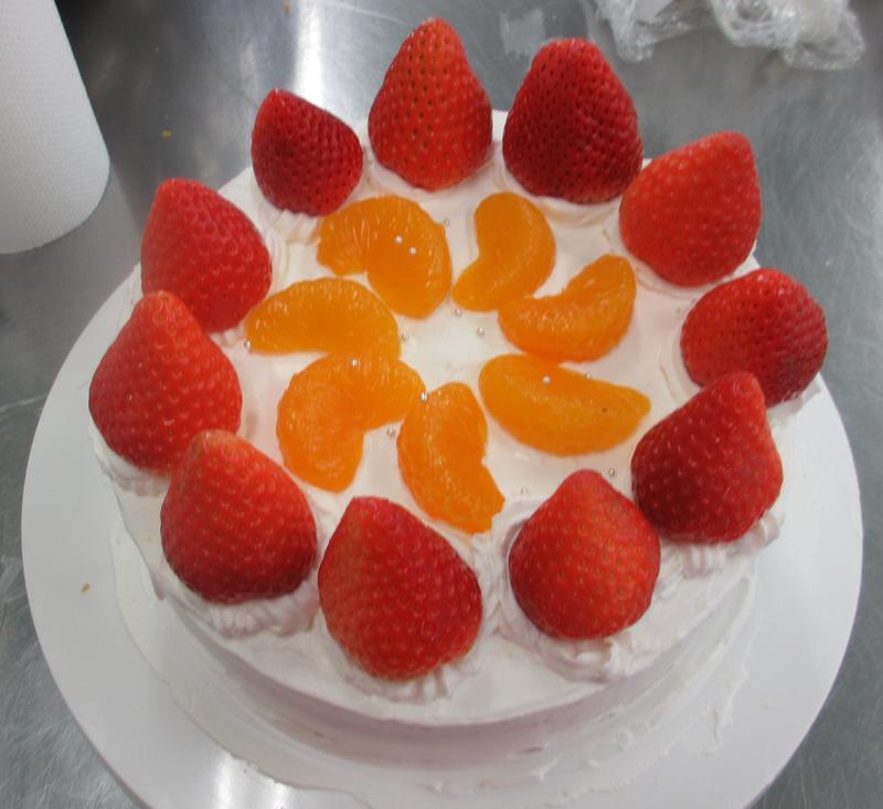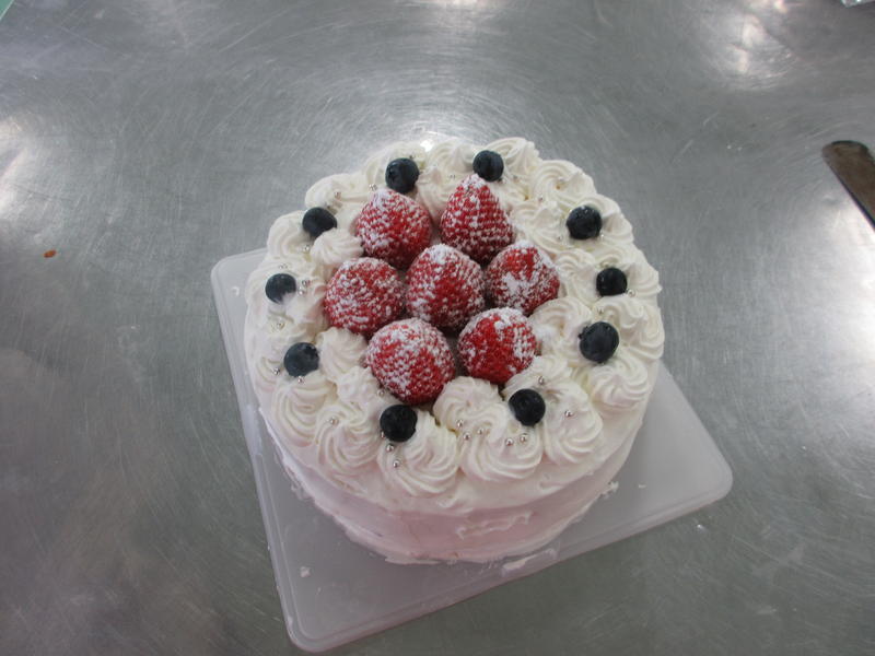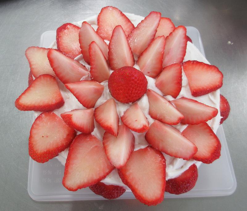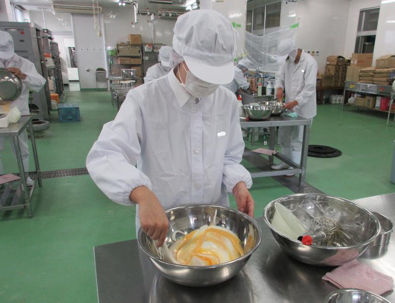 実際に生徒たちはロールケーキづくりに挑戦しました。生地づくりからフルーツを切って生クリーム、チョコレートクリームを塗ってフルーツを挟んで巻く所が一番難しそうでした。
