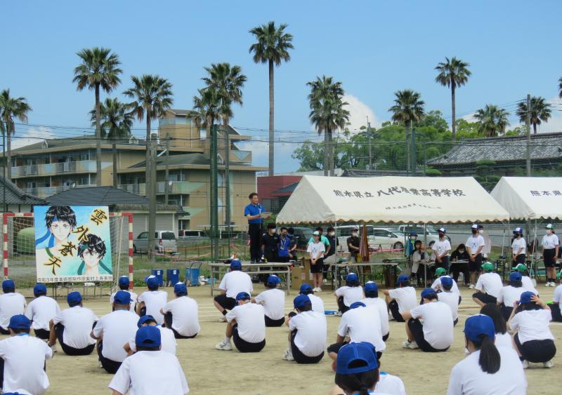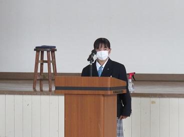 演題は「百年の歴史と私の一歩」。これからの八代農業高校での学校生活の意気込みを発表しました