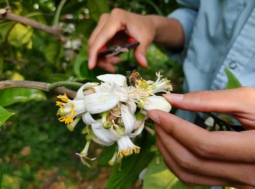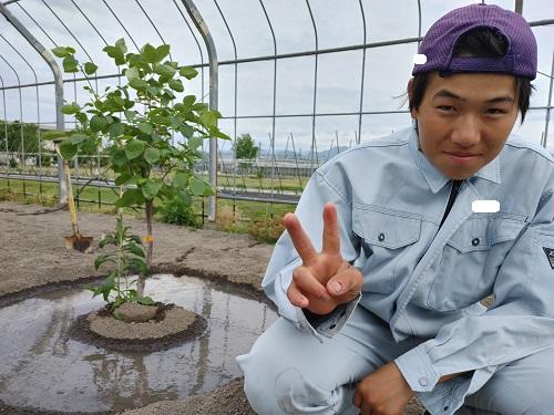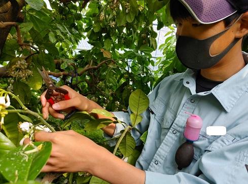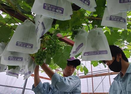 園芸科学科の果樹専攻では病害虫対策のため袋掛けを行っています。