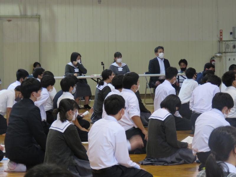 その後、校長先生より、講評と熊本地震での体験談や「まずは自分の命を守る。次に近くにいる人と助け合う」等の教訓を話されました。