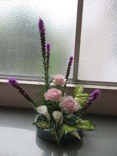 今日の花材は、バラ・カラー・リアトリス・ゴット です