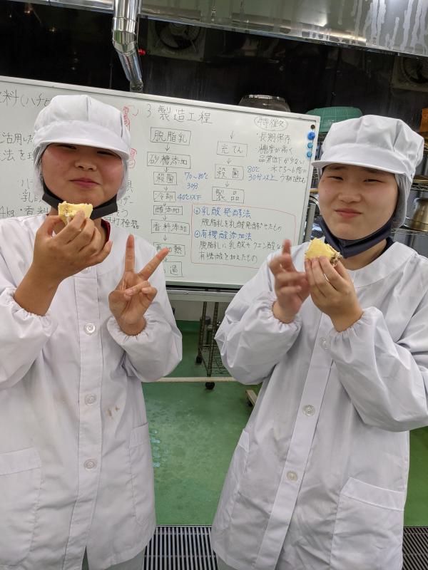 2年食品科学科の生徒たちは、体験入学で飲んで以来の生徒たちもいて、懐かしく美味しそうに試飲をしていました。