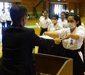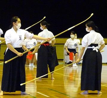 5月30日(日)に熊本西高校を会場に開催された熊本県高校総体なぎなた競技大会演技競技(女子)において3年生の松岡(八代第一中出身)・渕上(小川中出身)組が6月20日に沖縄県で開催を予定されている九州大会および8月に石川県で開催予定のインターハイ(全国大会)への出場権を獲得しました。