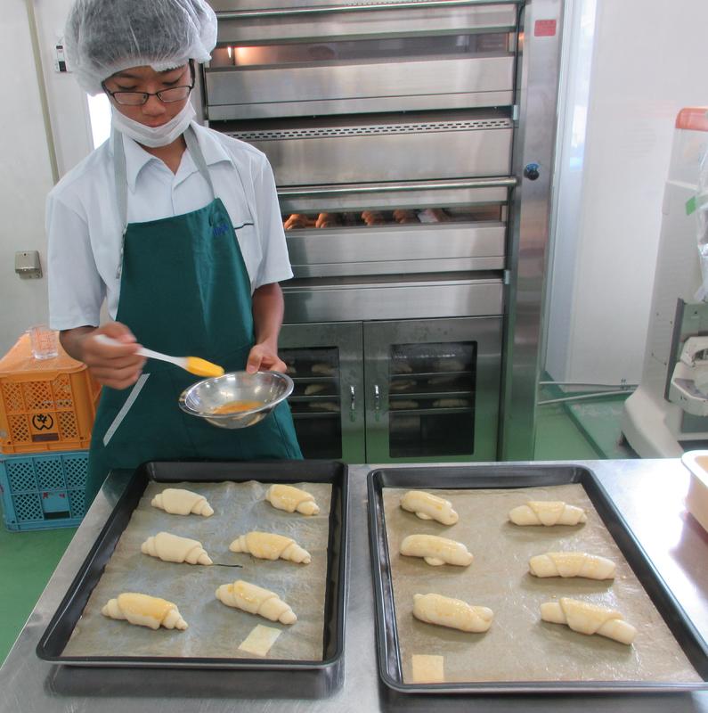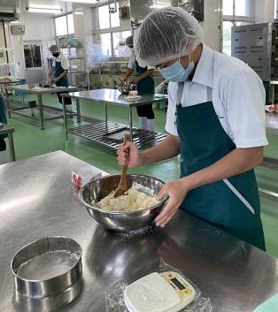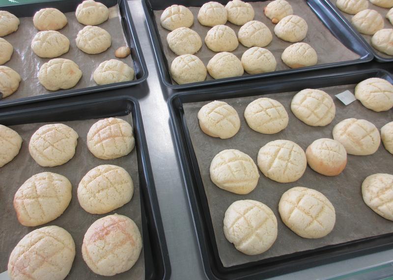 2年食品科学科の生徒たちが、食品製造の時間にメロンパン作りに挑戦しました。パン生地をクッキー生地で包むところが難しそうでしたが、みんなメロンの様な丸いメロンパンが焼きあがっていました。