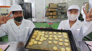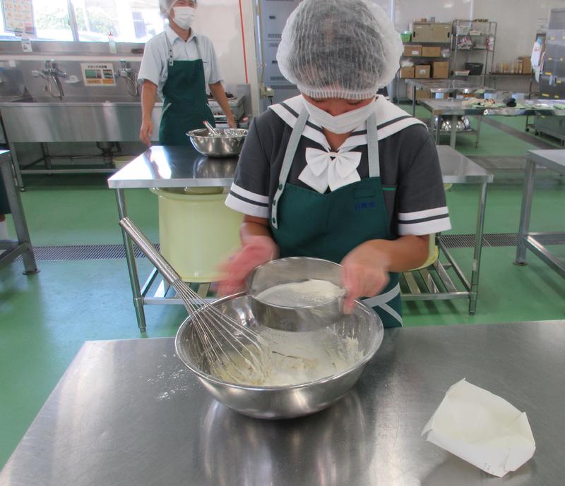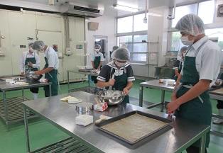今年の園芸科学科、農業工学科、食品科学科の1年生は、それぞれの学科の基礎となる農業と環境、測量、食品製造を学ぶようなカリキュラムになっています。今回は食品製造の実習で、それぞれクッキー作りをしているところを紹介します。