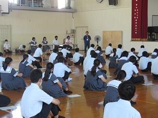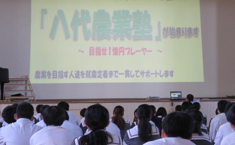 10月15日、全校生徒を対象に『八代農業高校地域連携事業』八代農業塾の説明をプロジェクト主査の太江田先生が行いました。